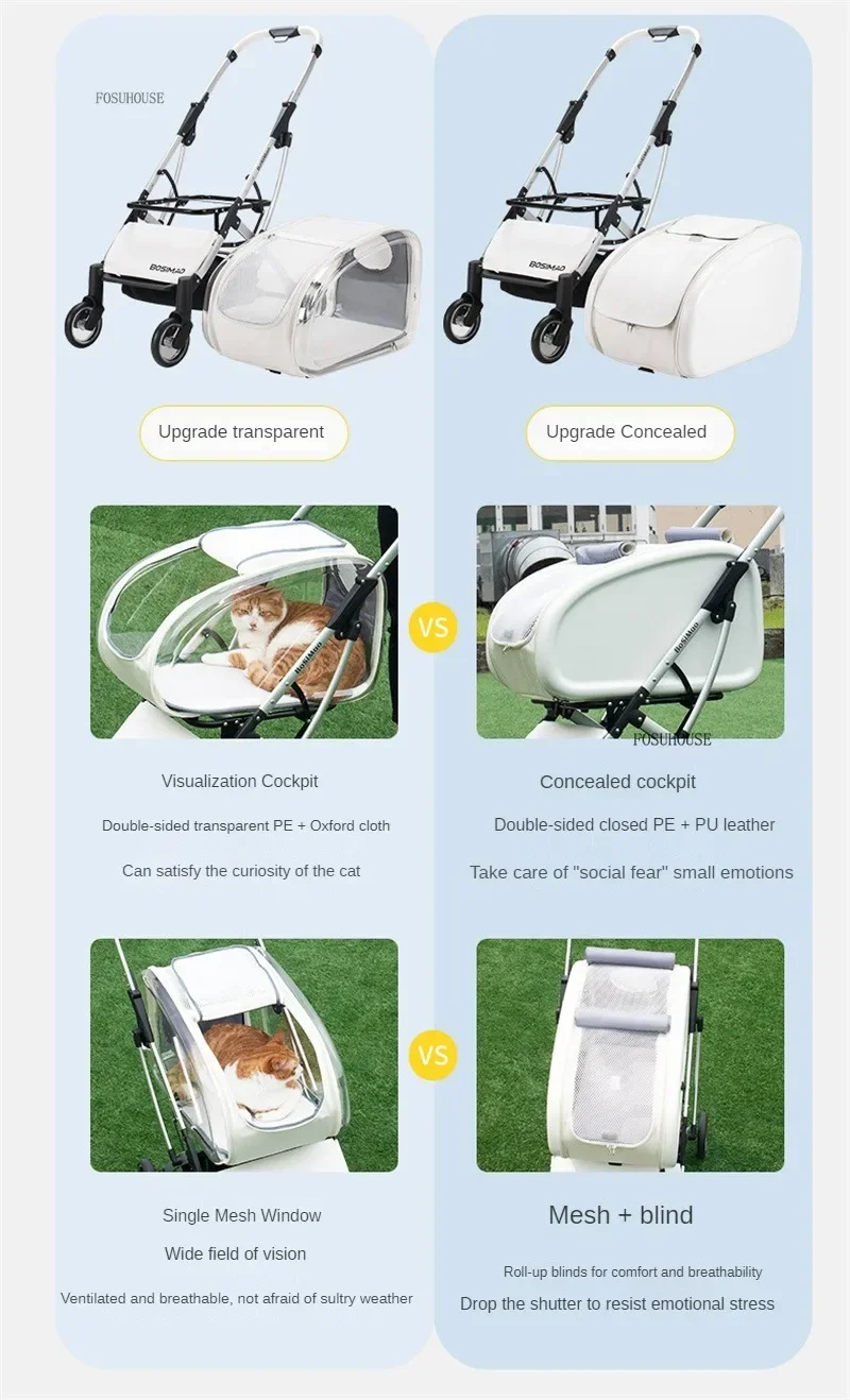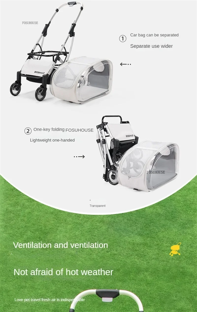 Cochecito multifuncional 2 en 1 para mascotas, ligero y plegable, para perros y gatos.