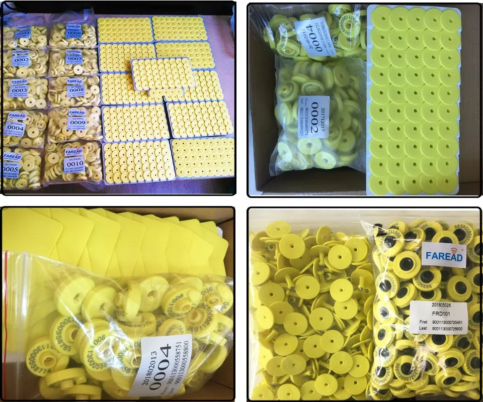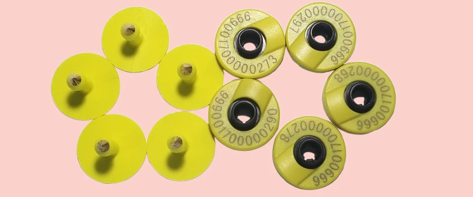 Etiqueta auricular RFID pasiva HDX de 134,2 kHz, estándar ISO, para la gestión de ganado bovino, ovino y porcino.