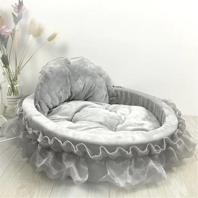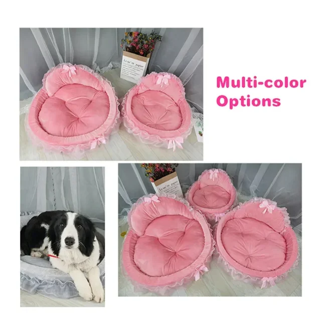 Hanpanda Fantasy Bow Lace Dog Bed Beds For Large Dogs Detachable Oval Pink Princess Pet Bed Basket For Dog Pet Wedding Furniture