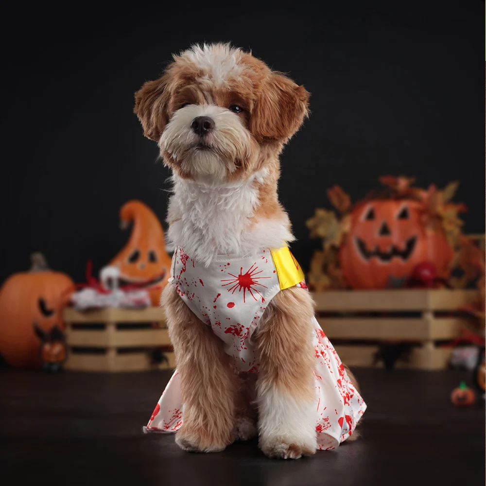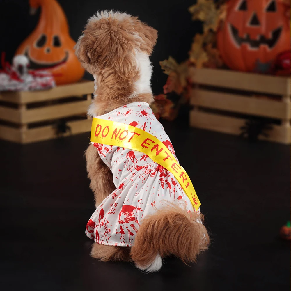 Pet Supplies Cosplay Costume Dog Dress Halloween Pet Clothes Skirts Blood Strip Seal Print Four Legged Dog Jumpsuit Festival