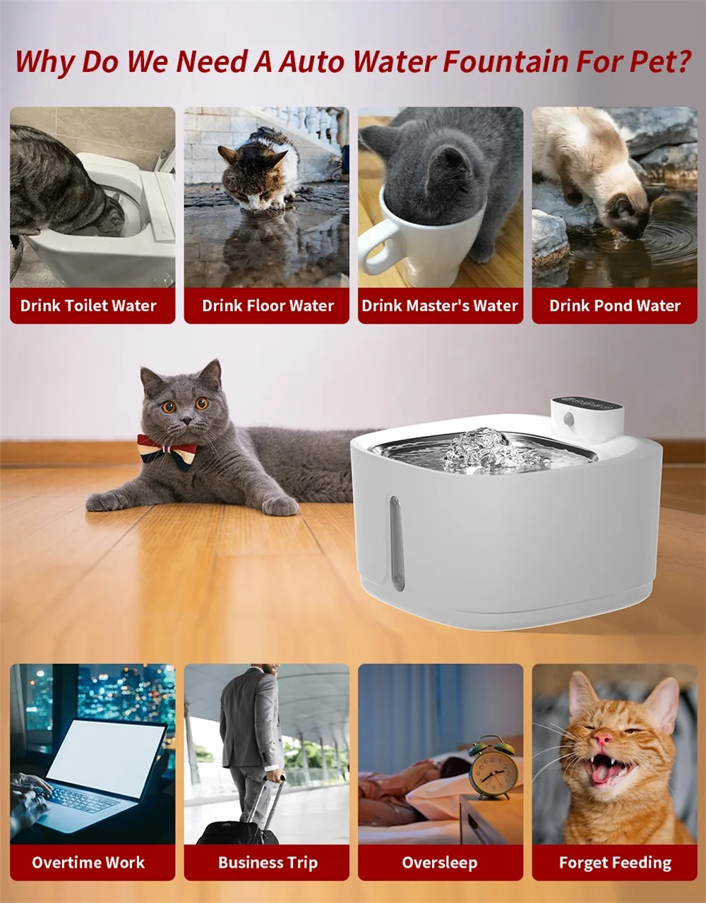 Pet Water Fountain Auto Recirculate Filter Large Capacity Filtring Cat Water Drinker USB Electric Mute Cats Water Dispenser