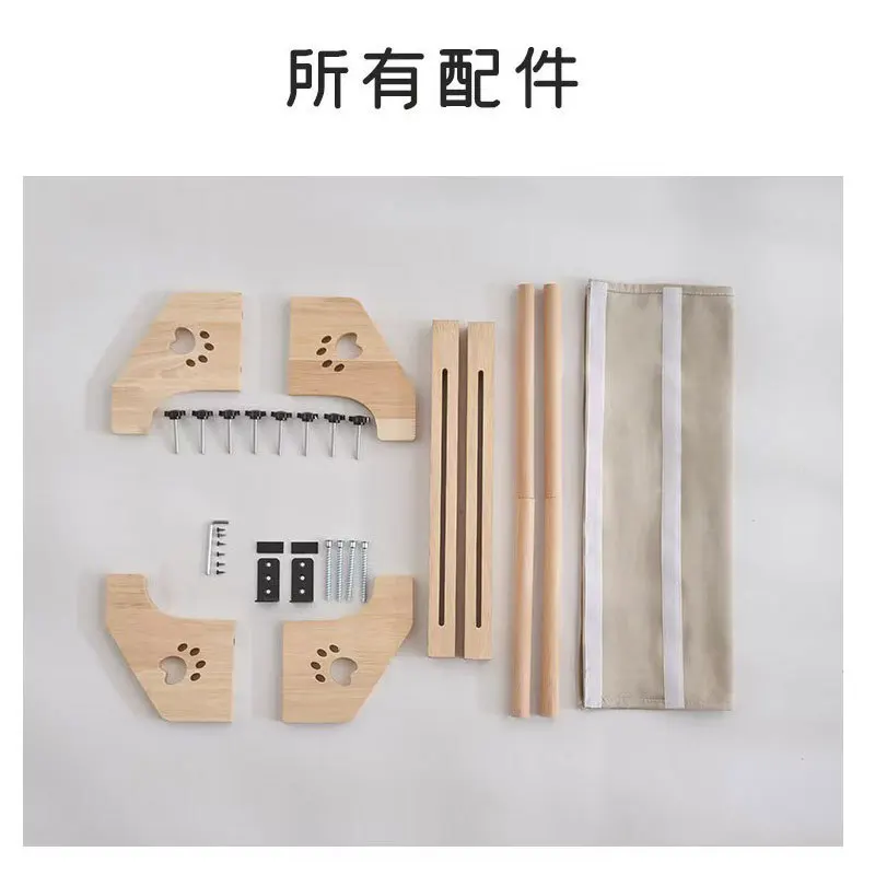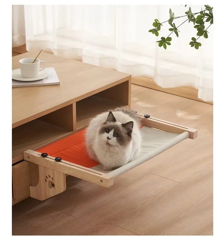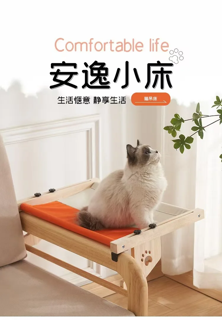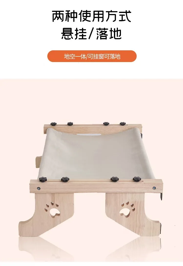 Solid Wood Climbing Balcony Sunbathing Bed Cat Wooden Hammock Hanging Frame